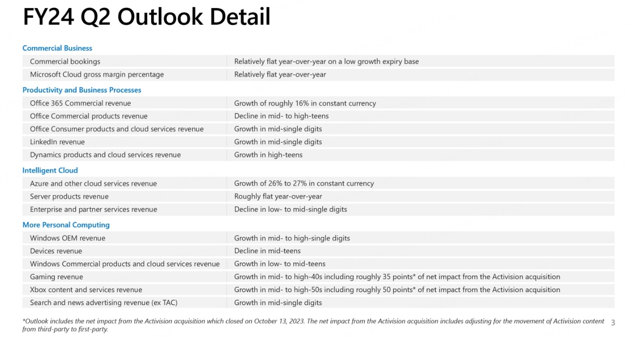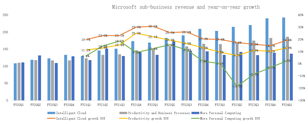 Non-cloud businesses, such as Windows OEM, reversed the previous five consecutive quarters of decline, mainly due to the global PC market recovery. Xbox returned to double-digit growth, mainly due to the higher-than-expected launch of new Starfield games.