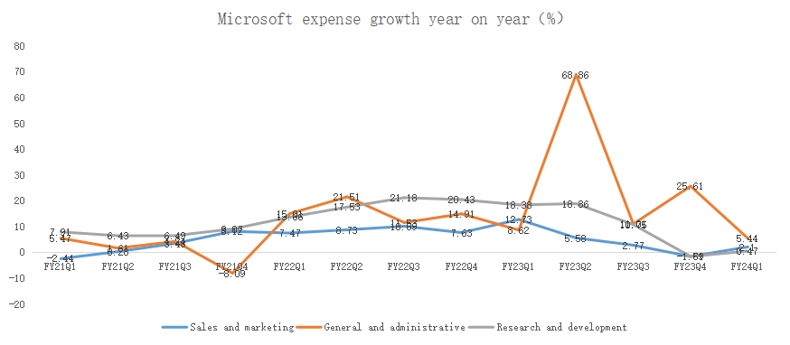 At the same time, Microsoft continued to reduce costs and improve efficiency. In the first quarter, its sales expenses increased 2.1% compared with the same period last year; Administrative expenses increased by 5.44% year-on-year.