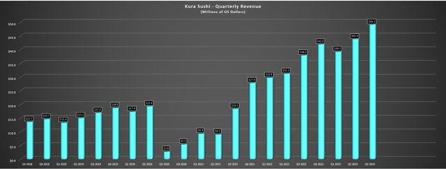 Kura Sushi - Quarterly Revenue - Company Filings, Author's Chart