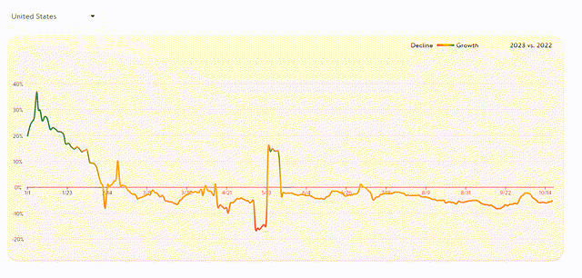 In fact, despite development/permitting delays, the company grew units at 25% last year, and is on track for another year of 25% growth, trouncing the growth rates of its highest-growth restaurant peers. Meanwhile, the company successfully implemented three key initiatives aimed at improving speed of service and or margin improvement, and is confident it has another ace in the hole with the potential for a robot dishwasher. That said, while there's lots to like about the company's growth, its improved cash position and its ability to claw back lost margins that others haven't from sticky wage inflation, industry-wide traffic worsened considerably from August through October to date and even trade-down options have seen deceleration, suggesting a negative change in consumer behavior. Let's take a look at the recent results below and see whether the stock is worthy of investment: