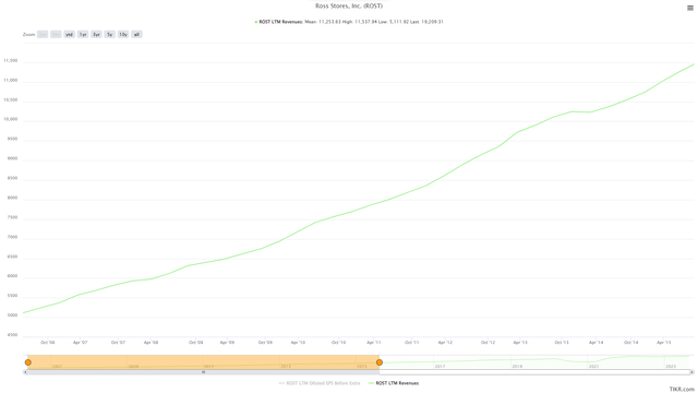 Ross Stores - TTM Revenue (2006-2015) - TIKR.com