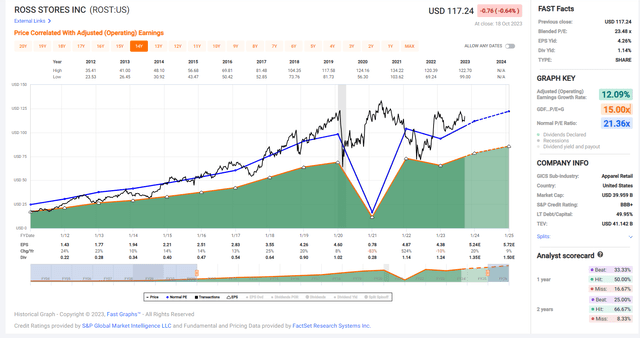 Ross Stores Historical Earnings Multiple - FASTGraphs.com