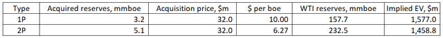More of the acquired proved reserves are producing relative to legacy W&T and the oil content is higher, but on the other hand the acquisition is only 2% of W&T's size. Scale typically drives a premium so you could also say the $1.5 billion estimate is rather conservative.
