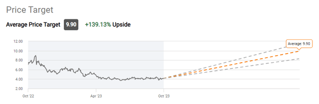 Based on W&T's capital structure, for the enterprise value to get to $1.5 billion, the stock price would need to increase from $4.14 to $8.65 for a 109% gain. The Wall Street target reported by Seeking Alpha is even north of my estimate: