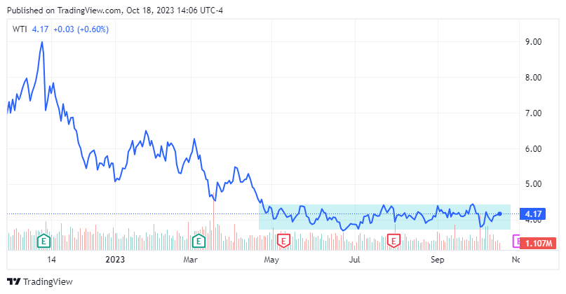 WTI is expected to report on November 1. According to Seeking Alpha, the consensus estimates are revenue of $129 million and EPS of $0. However, both oil and natural gas are tracking above the summer forecasts, so the setup for a "beat" is favorable.
