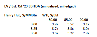 Looking further ahead to Q4, W&T would exit 2023 at about 3x EV/EBITDA: