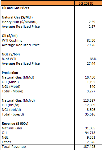 Note that while 50% of WTI's production is gas, the oil price is still more important as a revenue/EBITDA driver. WTI doesn't have oil hedges. Gas is still 2/3 hedged but that mattered more in 2022. For Q3 and Q4 I don't expect significant hedging losses.