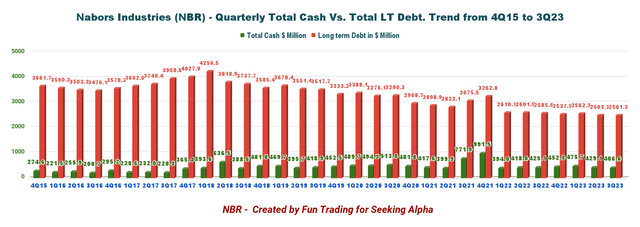 NBR Quarterly Cash versus Debt History (Fun Trading)