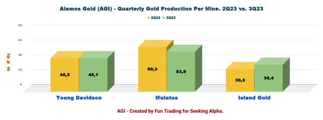 AGI Quarterly Production per Mine, 2Q23 versus 3Q23 (Fun Trading)