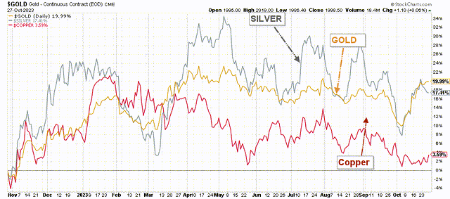 AGI 1-Year Chart Gold, Silver, Copper (Fun Trading StockCharts)