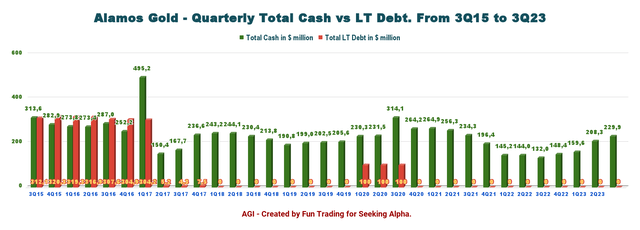 AGI Quarterly Debt versus Cash History (Fun Trading)