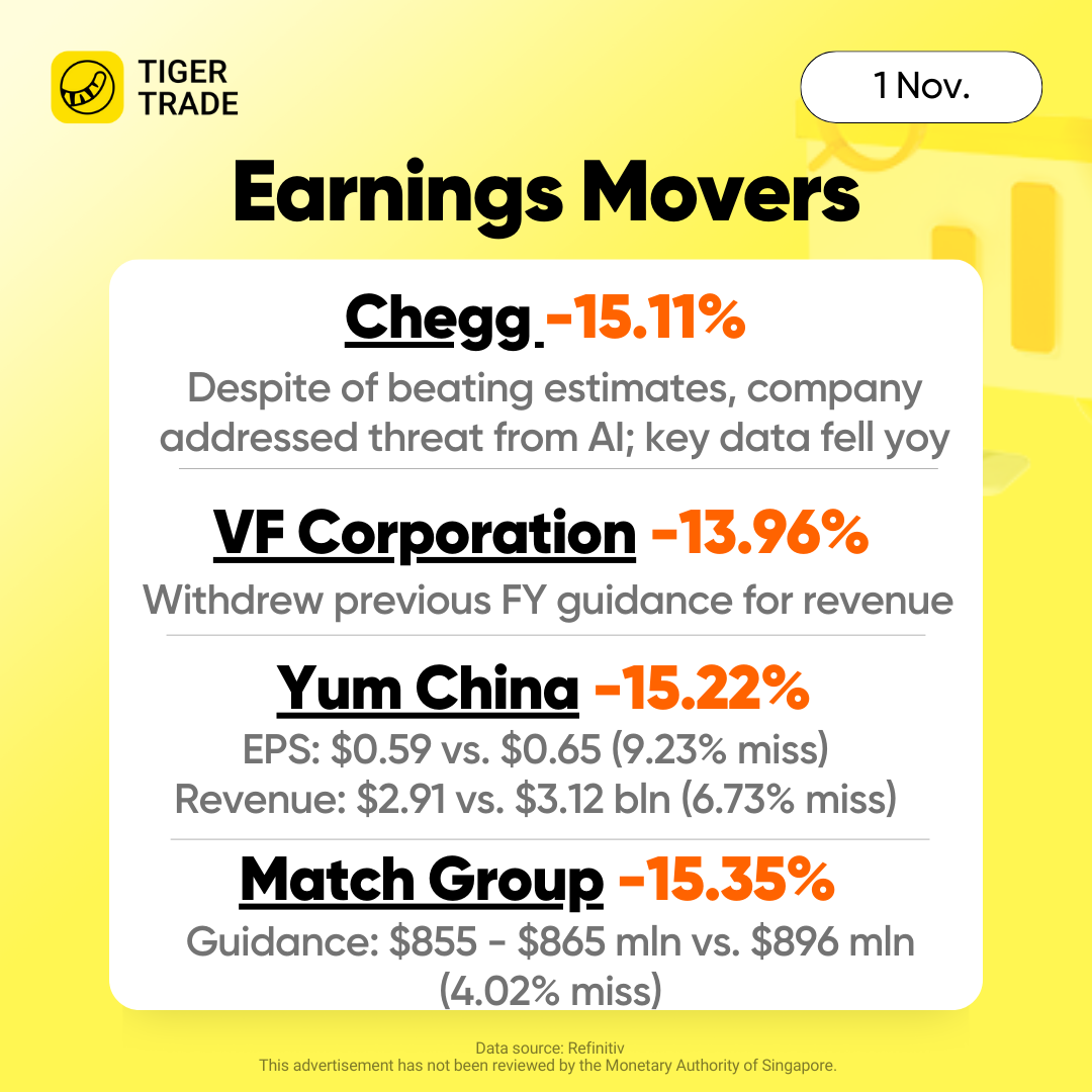 Earnings movers | CHGG, MTCH, CAT Beats but Guidance Fell Short; VFC Withdrew Guidance