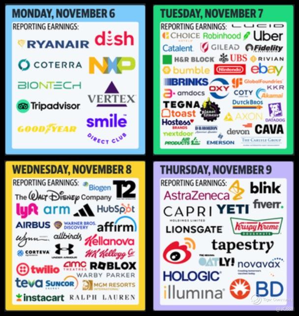 Quarterly earnings reporting for week beginning 06 Nov 2023