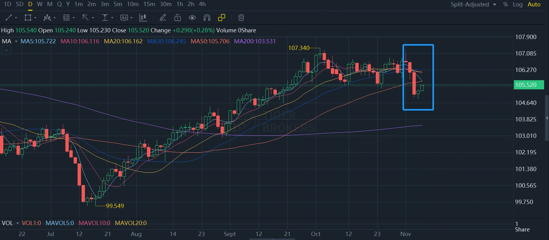 While Last week's movements were mainly caused by the combination of the Fed's suspension of interest rate hikes, the narrow of U.S. Treasury's quarterly refinancing plan and the weak non-farm payrolls report, which caused the $USD Index(USDindex.FOREX)$ to fall and U.S. bond yields to fall. (Since 1980, it is observed that the trend of the U.S. dollar index and the 10-year U.S. Treasury bond rate has generally been positively correlated.)