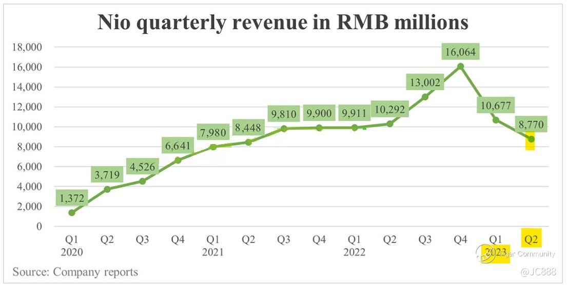 In Q2 2023, Nio’s revenue came to about RMB 8,770 Million (or RMB 8.77 Billion).