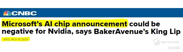 Like it or not, $Microsoft(MSFT)$ chips will have an impact on Nvidia’s sales volume, especially if both are at different price point.