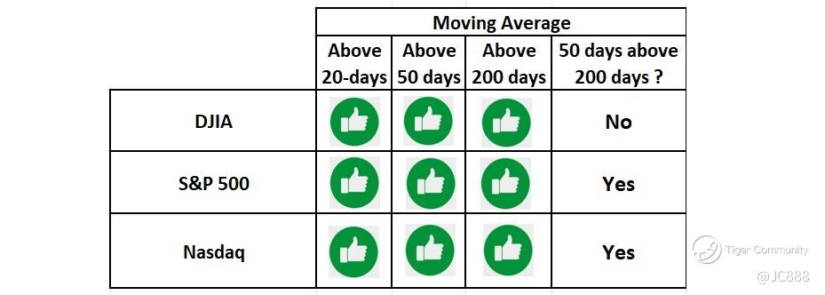 Also all 3 composite indexes 50-day moving averages are above its 200-day moving averages.