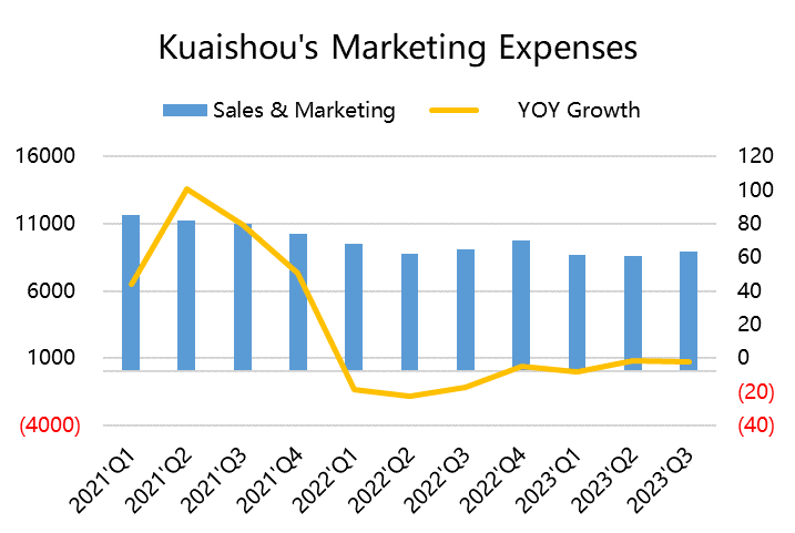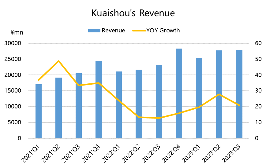The growth of advertising revenue is not surprising, as the market already had optimistic expectations. Therefore, in Q3, it grew by 26.8% year-on-year and recovered its growth trend on a quarterly basis. At the same time, Ad load and eCPM remained relatively stable compared to the previous quarter. Kuaishou's focus this year is to build a large model for data fusion across domains and industry models with thousands of clients and thousands of models, aiming to enhance the value of advertisers. It is expected that the company will maintain strong revenue from recurring advertising business in the second half of the year.