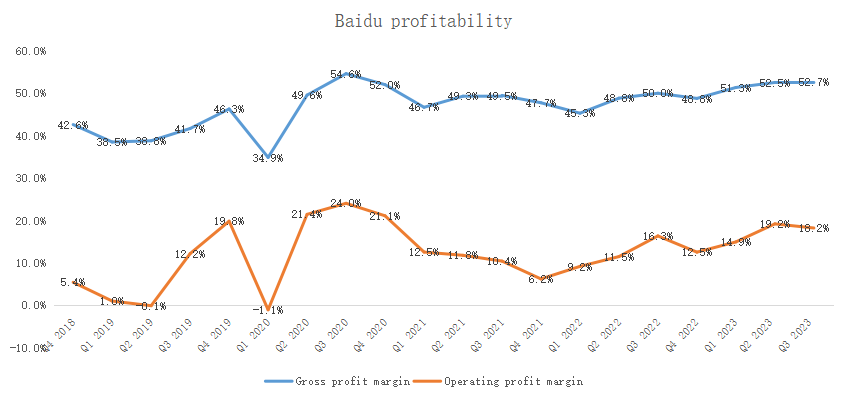 Although the growth rate of net profit is relatively high, Baidu's gross profit margin and operating profit margin have still improved, the profit growth rate is indeed better than revenue, and the cost reduction and efficiency increase are indispensable: