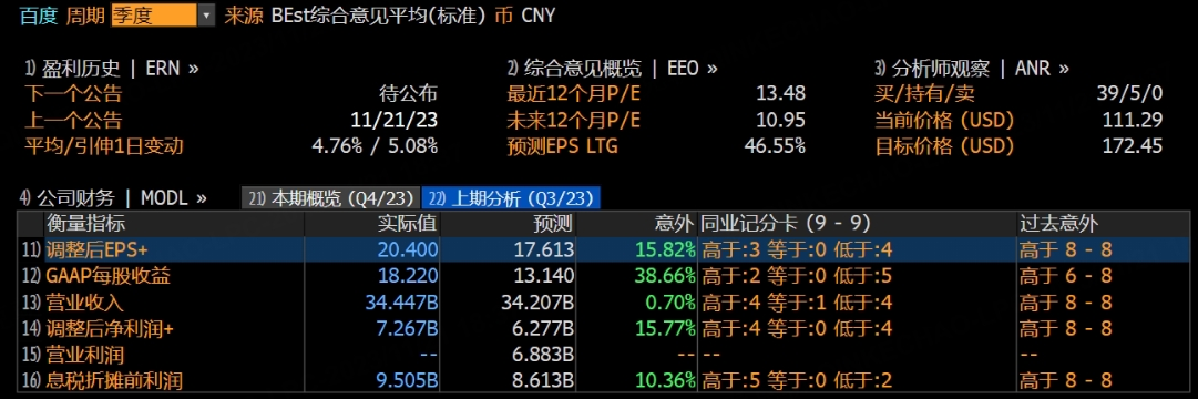 With revenue slightly exceeding expectations, Baidu's profit in the third quarter exceeded expectations, including adjusted net profit of 7.27 billion yuan, much higher than analysts expected 6.28 billion yuan: