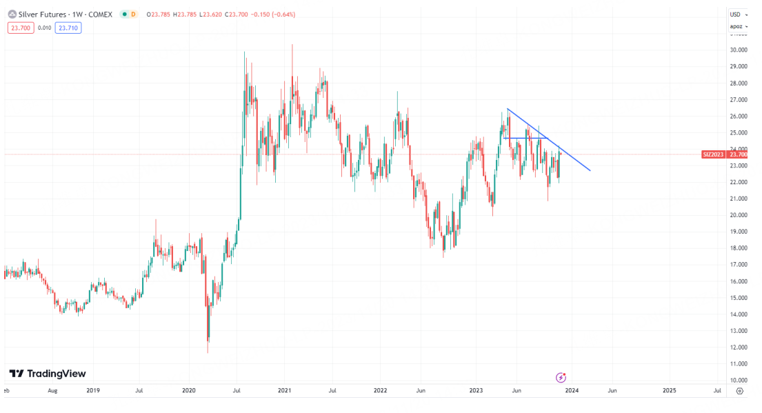 Gold fell to correction in November after rising continuously, but silver, which had been tepid before, walked out of the bullish positive trend last week. The downward trend line resistance since the first quarter of this year is currently suppressing the attack of silver bulls. If the suppression can be successfully broken through, precious metals are expected to make greater progress, and gold is even expected to reach a new high at the end of this year