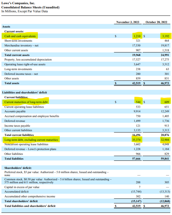 $Lowe's(LOW)$ in recent years has relied on debt to fund buybacks Debt has doubled since FY19 FY23, YTD net debt increased ~$2.1B.