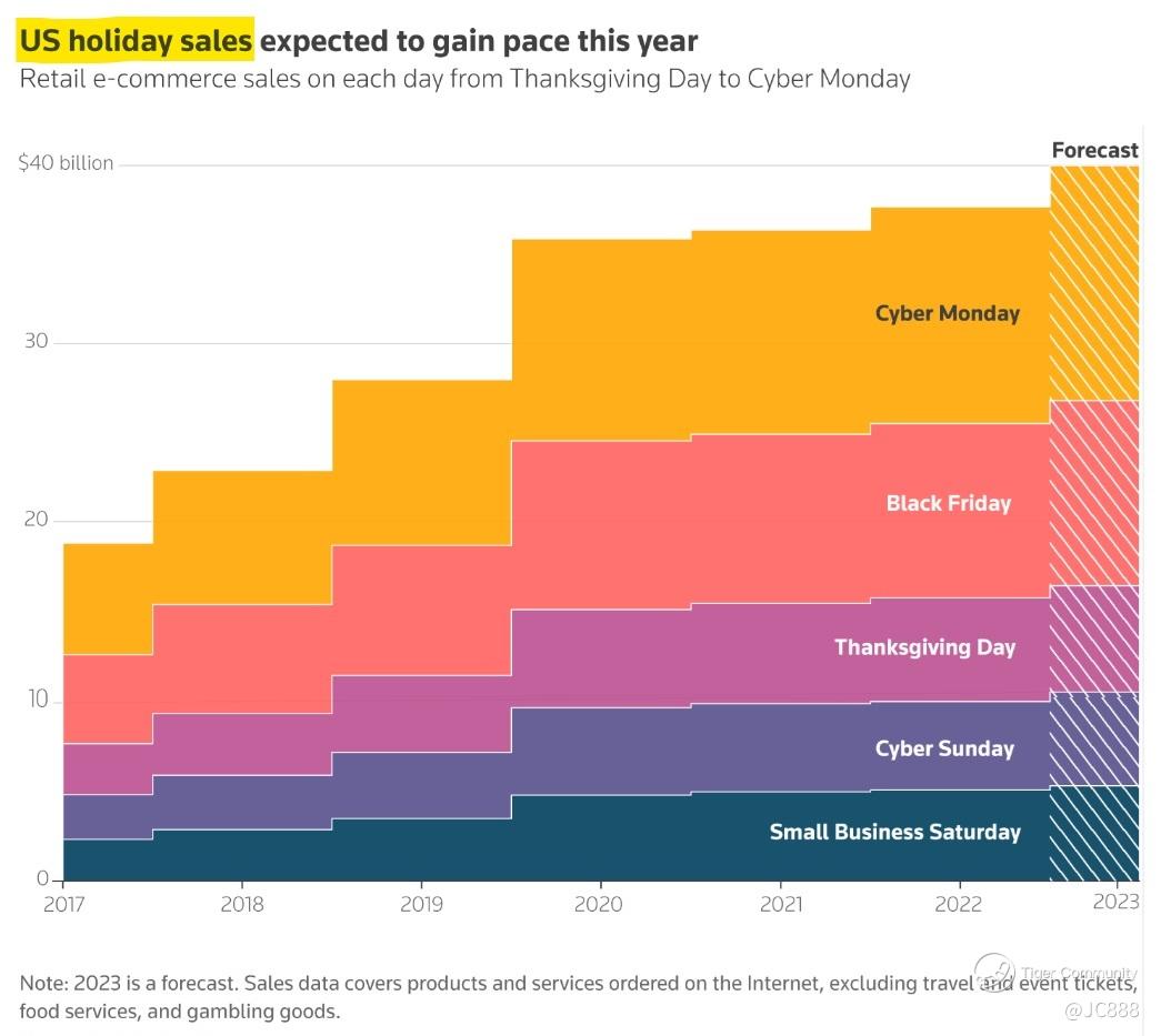 US holiday sales is expected to gain pace this year. (see above)