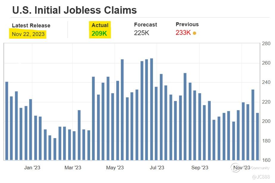 Last Wed, 22 Nov 2023 - US weekly jobless claims report, for week ending 18 Nov 2023 may throw some light on the state of US economy.
