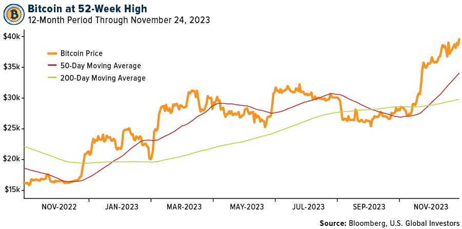 Bitcoin, gold’s digital cousin, has not been left behind. CNBC reports a significant rally in the world’s leading cryptocurrency, reaching highs not seen since May 2022. Bitcoin’s resurgence, climbing above the $38,000 mark on Friday, signals a growing investor appetite for alternative assets.