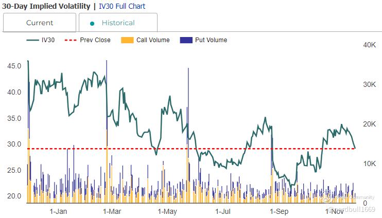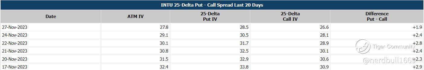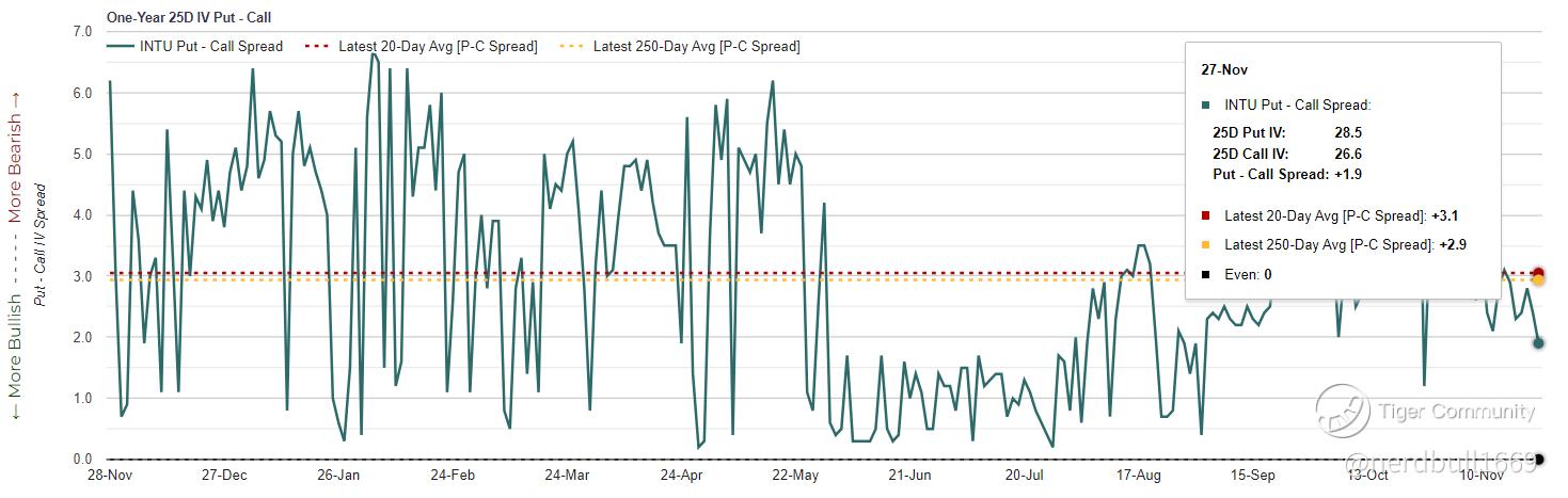 Based on what we have seen from the implied volatility skew, market seem to be pricing in a larger fear to a downside move. This could resonate with Intuit did warned at their investor day in September that certain macroeconomic headwinds were affecting its business.