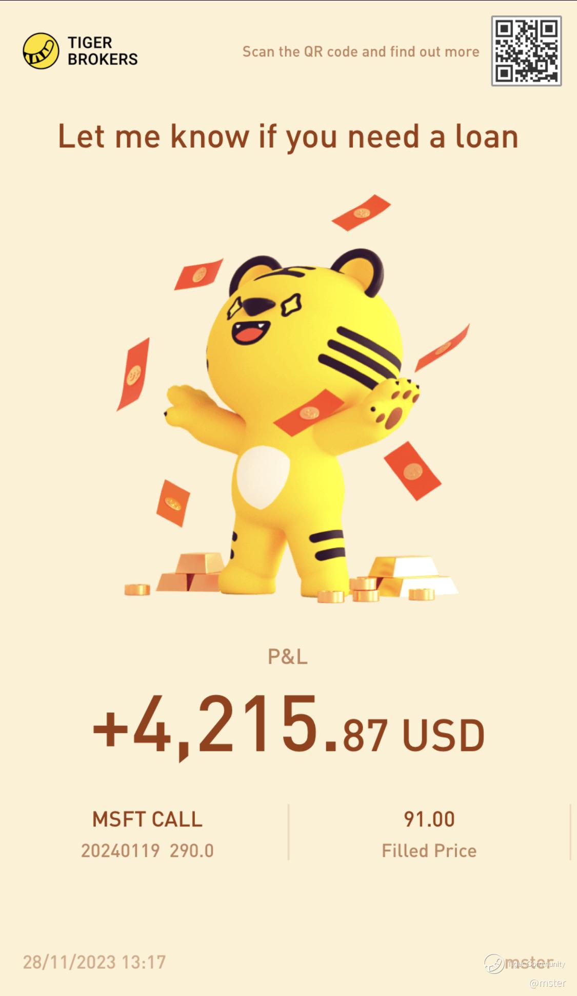 Conversely, the Microsoft Leap Call has proven to be a fortuitous investment. Rebounding from a low of $210 in November 2022, Microsoft is now reaching new highs, propelled in part by the prevailing AI trend. While I remain optimistic about the continued growth of the AI sector, the imminent expiration of the Leap Call within two months has led me to opt for closure to preemptively mitigate the impact of substantial time decay on accrued profits.