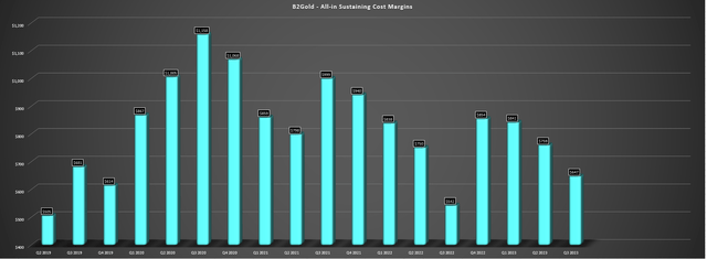 B2Gold Quarterly AISC Margins - Company Filings, Author's Chart