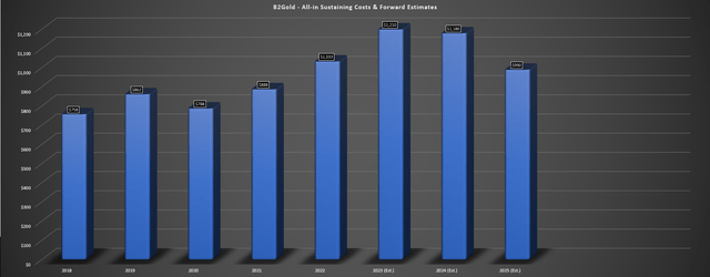 B2Gold Annual AISC & Forward Estimates - Company Filings, Author's Chart