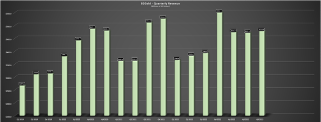 B2Gold Quarterly Revenue - Company Filings, Author's Chart