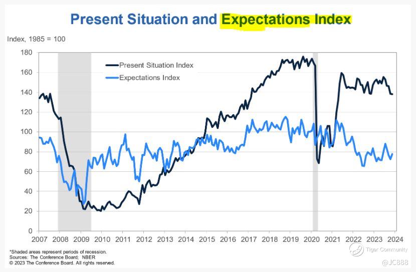 Despite this month’s improvement, the Expectations Index remains < 80 for a 3rd consecutive month—a level that historically signals a recession within the next year.