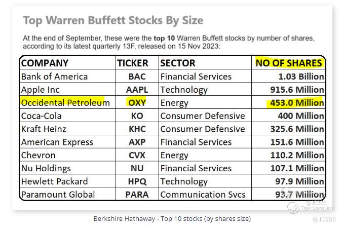 Incidentally, Occidental Petroleum is Warren Buffett’s ranked #3 US stock by size. (see below) Need I elaborate more?