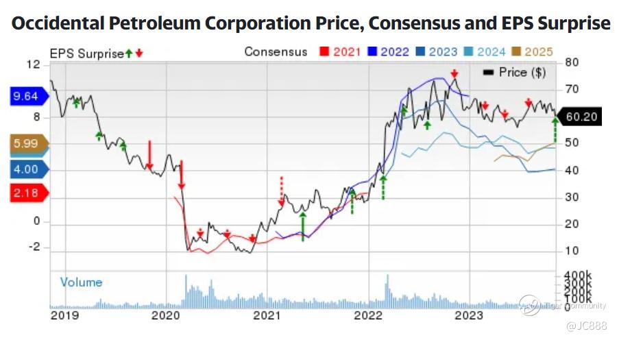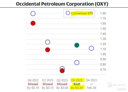 Earnings per share (EPS) was $1.18 per share versus market expectations of $0.89, exceeding it by +32.58%. This also marked OXY’s first positive EPS after 3 consecutive quarter of negative EPS. (see below)