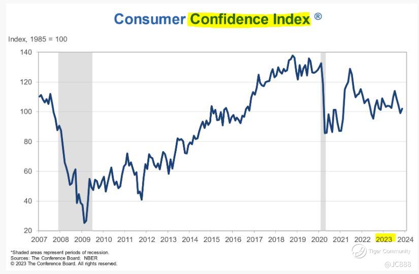 The Conference Board Consumer Confidence Index® increased in November 2023 to 102.0 (1985=100), up from a downwardly revised 99.1 in October.