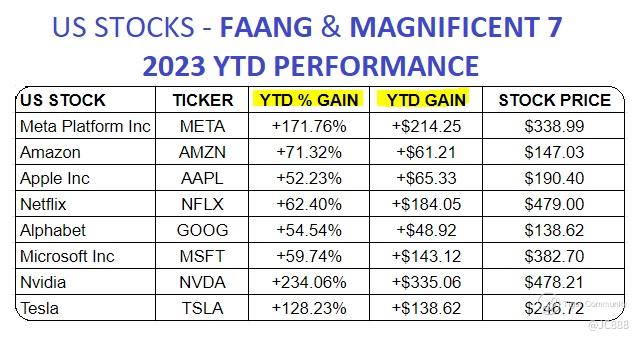 While the Magnificent 7 or the FAANG are still US holy shrine stocks, I believe now is not really the time to plonk more money into them, for the simple argument that they have risen quite a fair bit YTD. (see below)