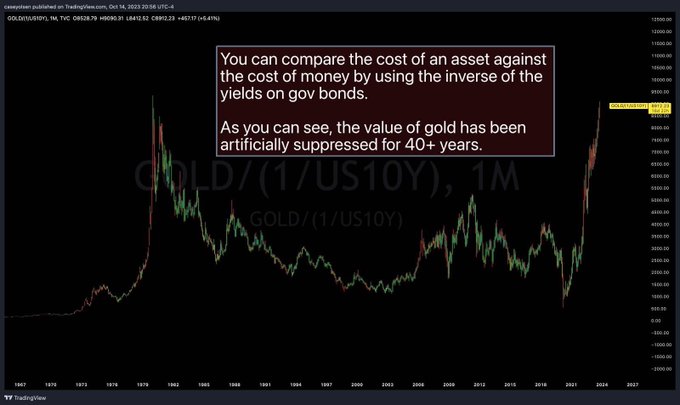 According to @caseylolsen, Gold Trader. Technical Analyst, gold performs well in times of directional uncertainty *in all other markets*. During periods of money printing, gold prices rise temporarily until the market shifts to risk-on assets, and then sells off. However, the gold price has been suppressed for 40 years.