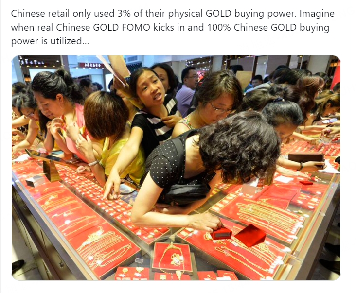 Cited from Eric Yeung @KingKong9888 on X platform. It is reported that Chinese retail only used 3% of their physical GOLD buying power.