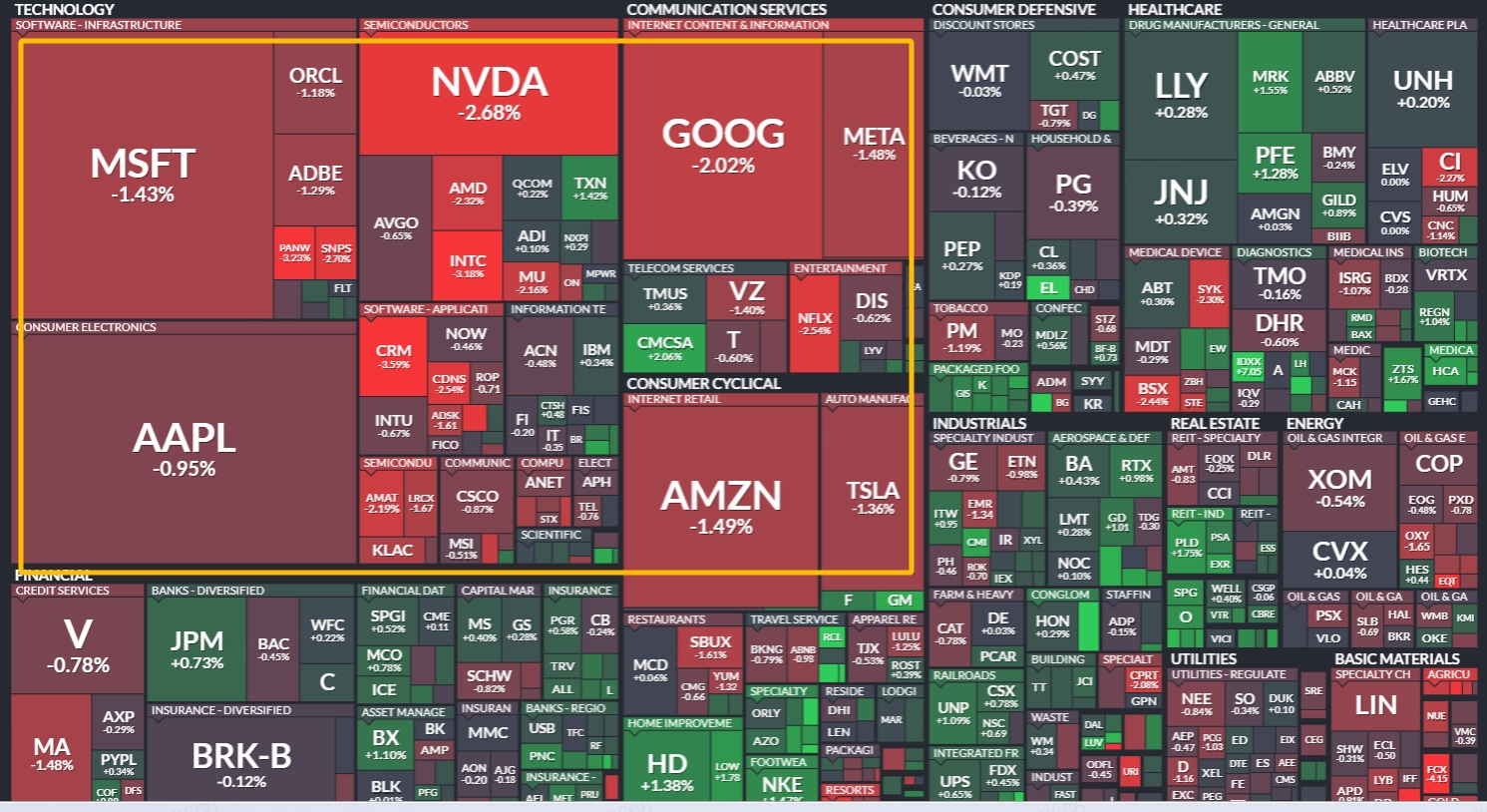 Many big tech stocks pulled back on Monday, with all three major indexes retreating.