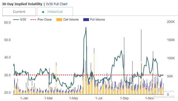 Historically, the median IV for the current month of December was 30.6 compared to the current IV of 29.8. The IV level in January following December tended to be lower, with a median IV of 29.5