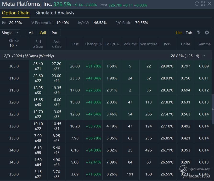 Meta Platforms (META) Option Contract 12/01/2024 (36 Days)