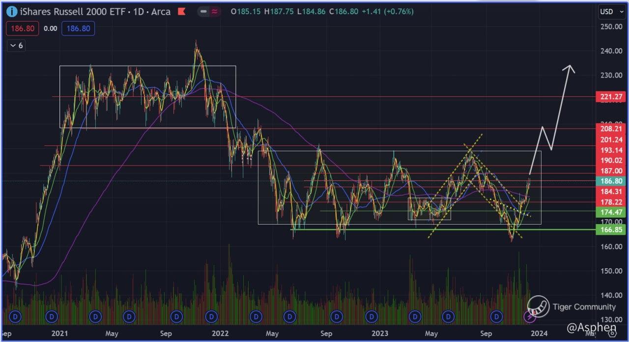 - Massive liquidity built would signal a very strong push if 2024 sees small caps break above the range!