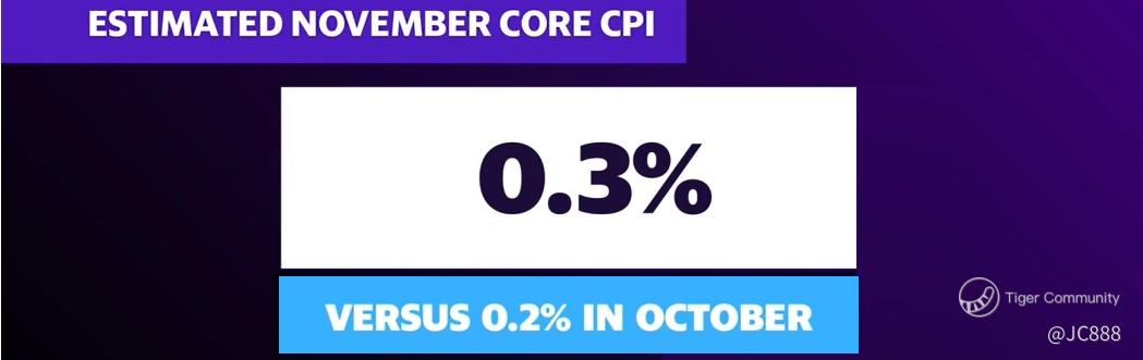 Wall Street anticipates US’s November 2023 core CPI (Consumer Price Index) to register a 0.3% MoM increase. (see above).