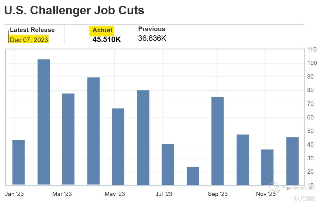 Planned layoffs in November 2023, was 45,510 jobs lost.