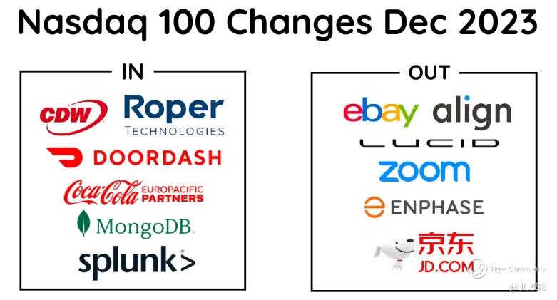 For 2023, Nasdaq 100 will begin trading relying on the newly rebalanced list of 100 stocks on Mon, 18 Dec 2023.