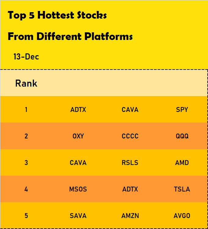 Daily Hottest Stocks(13 Dec): Which one would you like to buy?