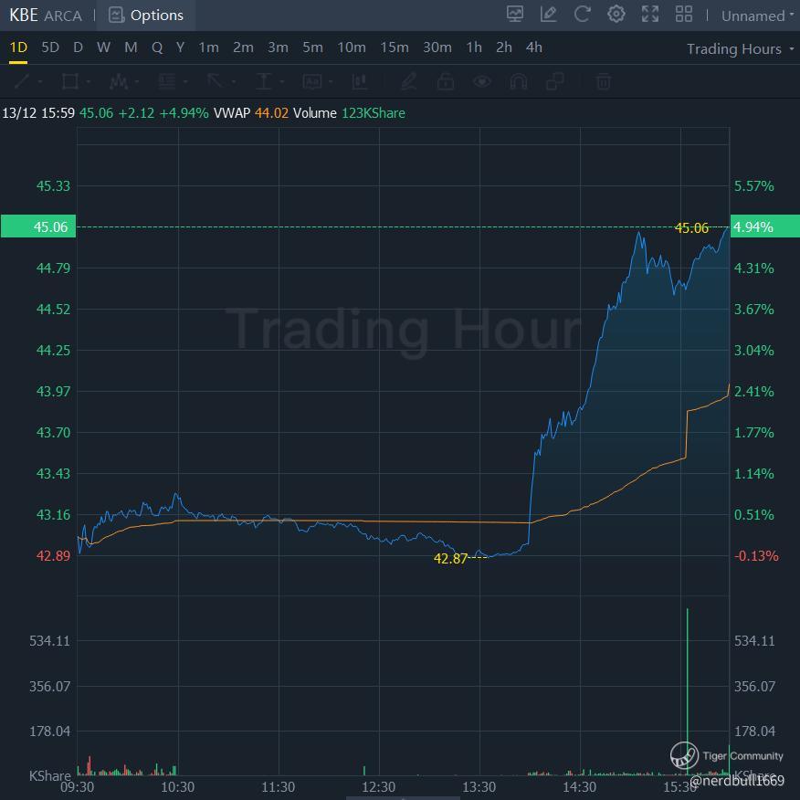 Bank of America Corp and $Wells Fargo & Co(WFC.US)$ shares are trading higher going into the close of Wednesday's session. Shares of several companies in the broader financial sector are trading higher amid overall market strength after the Fed left rates unchanged, with most Fed officials seeing rate cuts in 2024-2026.